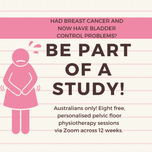 Got bladder control issues and a history of breast cancer? Let a pelvic floor physiotherapist help you - for free! Be part of science from your couch.