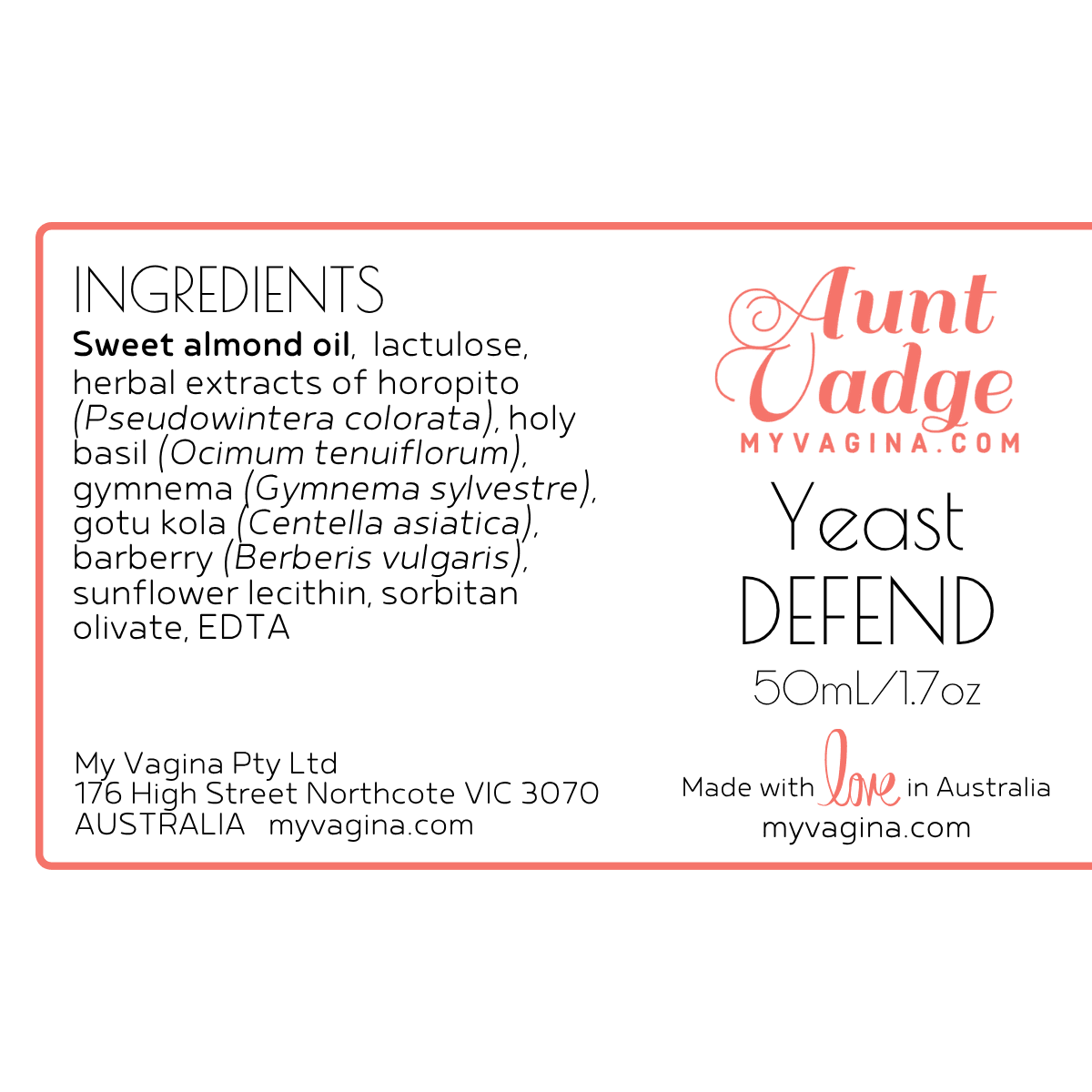 Aunt Vadge’s Yeast Defend is designed to support the recovery from vaginal yeast infections and promote protective microflora.